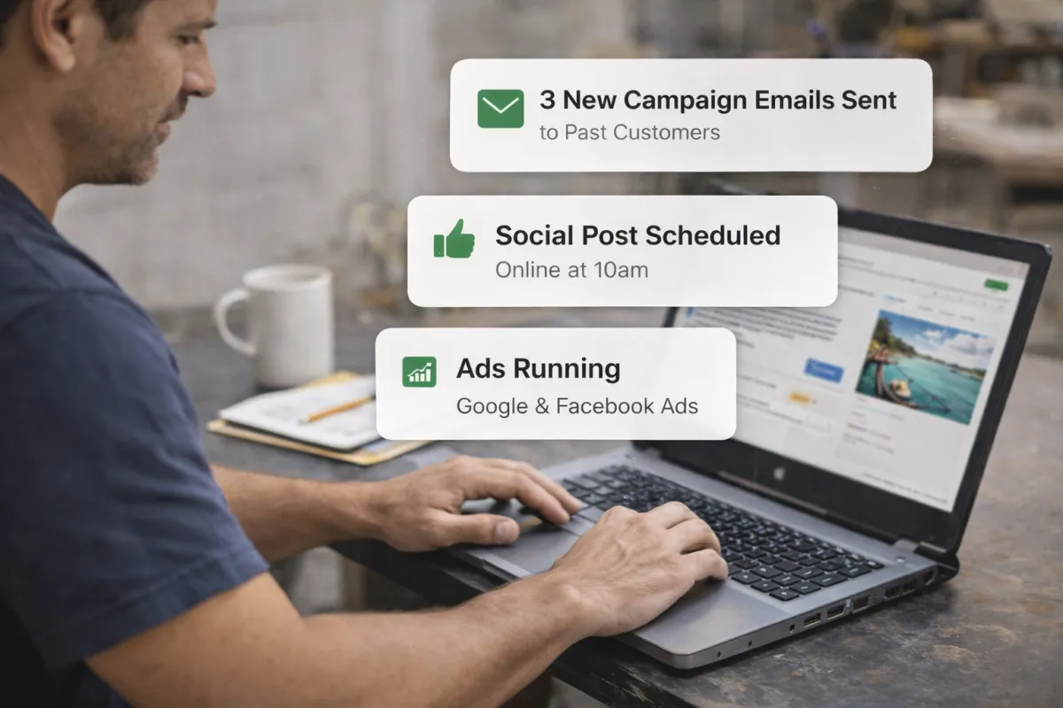 Gives you visibility into leads, conversations, jobs, and revenue so you always know what’s happening.